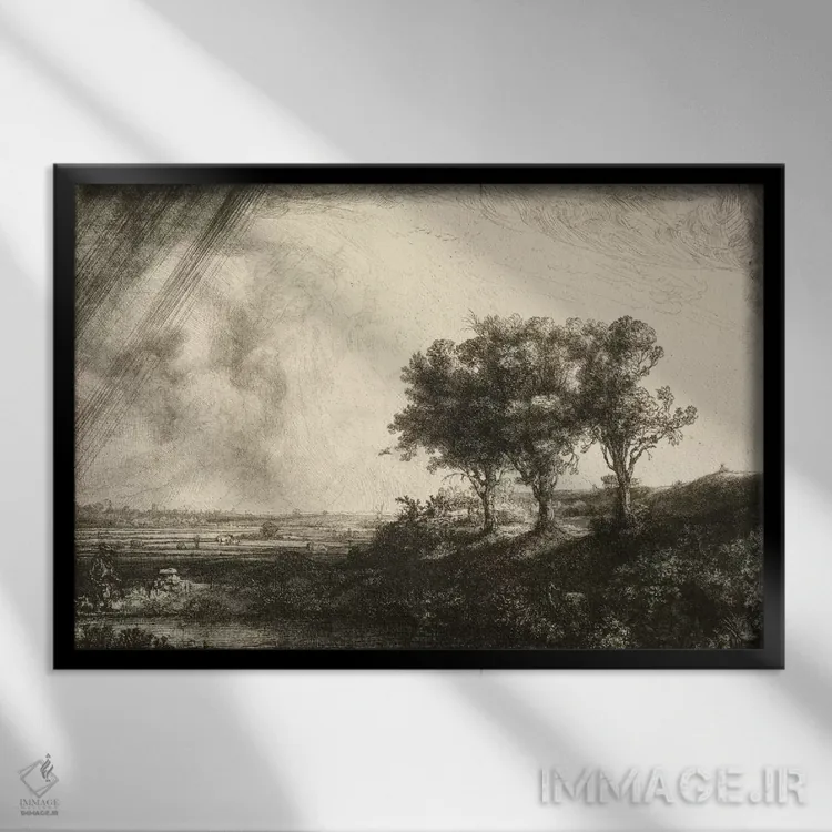 «۲۳.K5—292 سه درخت» اثرِ «رمبرانت فان رَین (نقاش بزرگ هلندی)» از آن انتخابهاییست که اتاق را جمعوجورتر و مرتبتر نشان میدهد؛ برای راهروها و ورودیهای مینیمال انتخابی عالی است. در کنار نورپردازی نقطهای، جلوهاش حرفهایتر میشود.