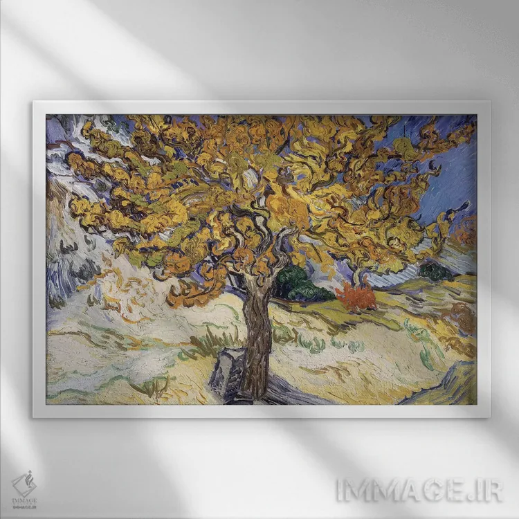اگر دوست دارید دیوار روشنتر و آرامتر دیده شود، «1889، درخت توت، ۱۸۸۹» اثرِ «ونسان ون گوگ (نقاش مشهور هلندی پستامپرسیونیسم)» برای دیوارهای ساده، یک لطافتِ دقیق میسازد، برای فضاهای بوهمی گزینهٔ مناسبیست. با قاب روشن یا چوبی، حس طبیعیتری پیدا میکند.