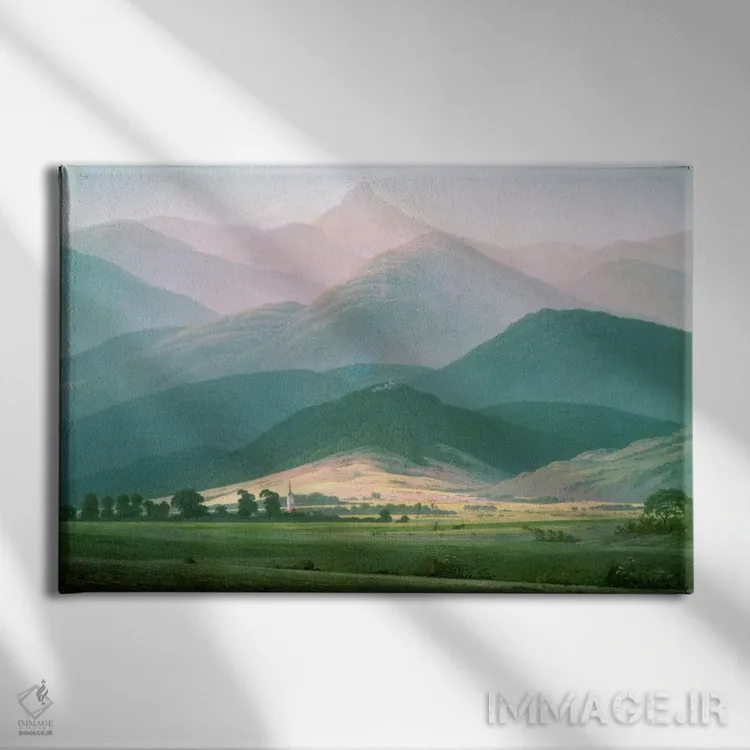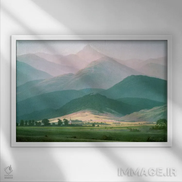 «منظرهای در رشتهکوه رایزنگیبرگه، ۱۸۱۰—۱۱ (آلمان/لهستان)» اثرِ «کاسپار داوید فریدریش (نقاش رمانتیک آلمانی)» یک انتخاب کلاسیک و مرتب است؛ موضوعِ این اثر در آن برای دکورهای لوکس و چوبی عالی مینشیند.