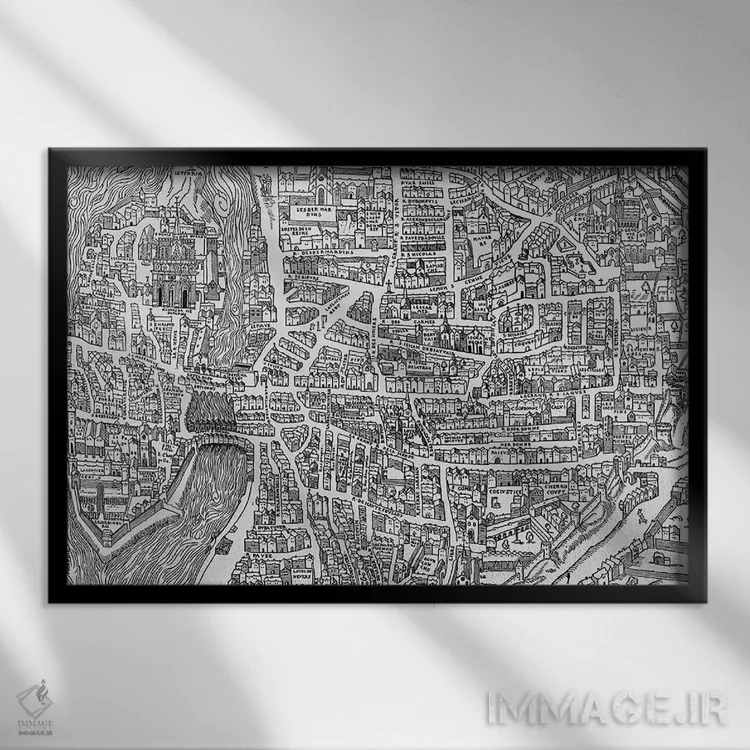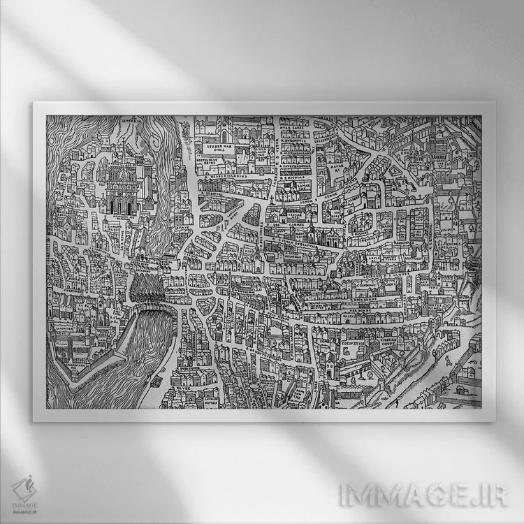 «جزئیاتی از نقشه پاریس در دوره هنری دوم، محله مدارس، ۱۵۵۲» اثرِ «مکتب فرانسوی (سبک یا جریان هنری)» اگر به جزئیات کلاسیک و حس قدیمیِ شیک علاقه دارید، گزینهی خوبیست.