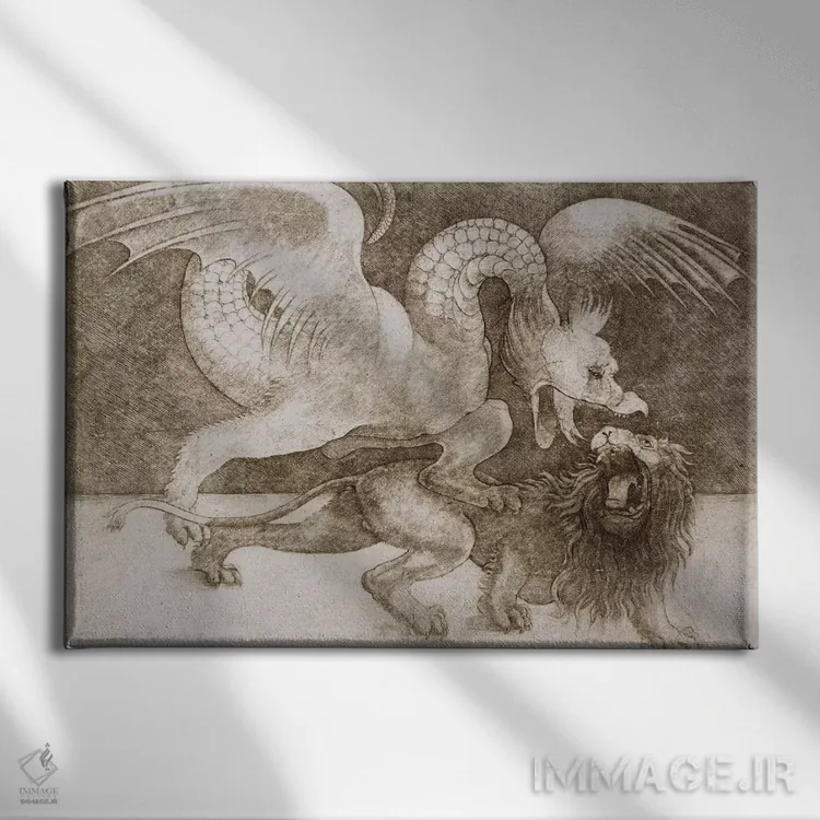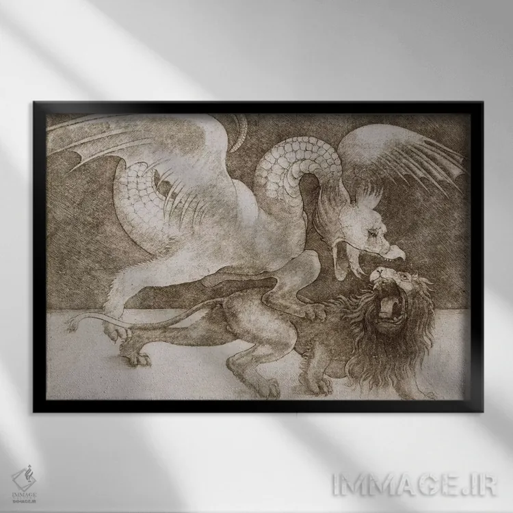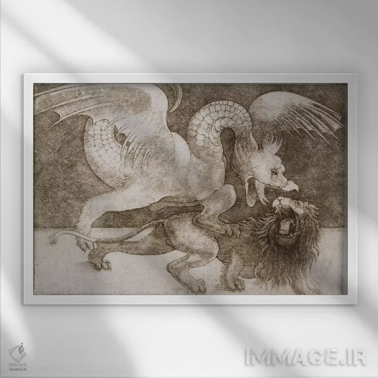 تابلو کلاسیک نبرد اژدها و شیر اثر لئوناردو داوینچی