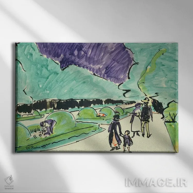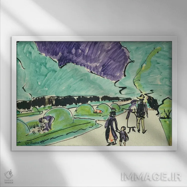 این اثرِ «ارنست لودویگ کیرشنر (نقاش اکسپرسیونیست آلمانی)» در لحن کلاسیک، وقار بصری دارد؛ موضوعِ این اثر هم برای دیوارِ شاخص و نورپردازی گرم بسیار مناسب است.