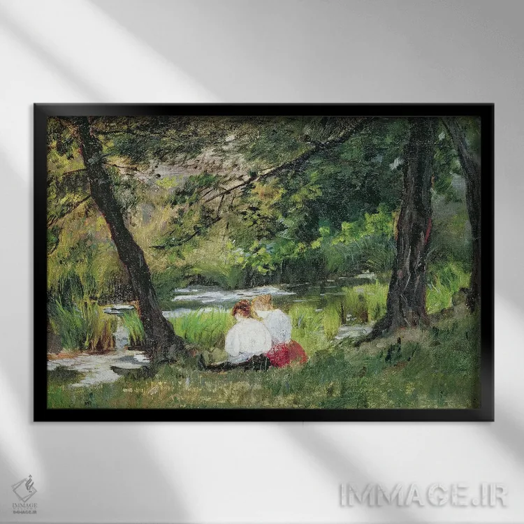 تابلو دو زن نشسته اثر مری استیونسون کاسات (نقاش آمریکایی) - نمای قاب‌دار مشکی