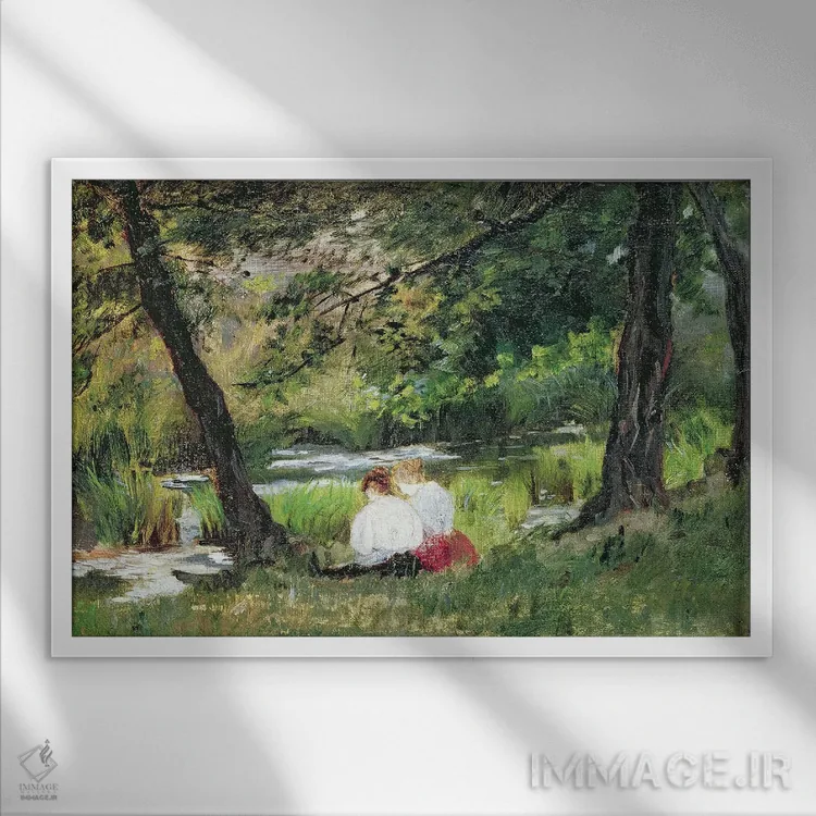 تابلو دو زن نشسته اثر مری استیونسون کاسات (نقاش آمریکایی) - نمای قاب‌دار سفید