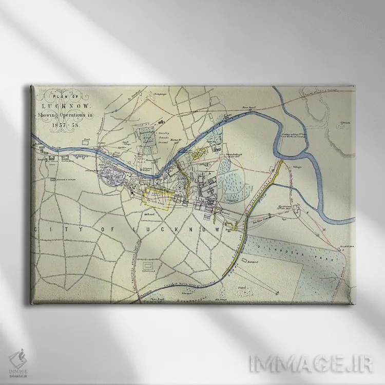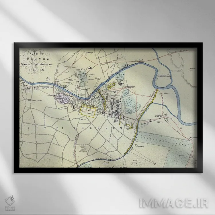 «نقشه عملیات لاکنو در ۱۸۵۷—۵۸، منتشرشده توسط ویلیام مککنزی، حدود ۱۸۶۰» اثرِ «مکتب انگلیسی (سبک یا جنبش هنری)» با حالوهوای هنری، حس نوستالژیِ کنترلشدهای به فضا میدهد؛ مناسب برای چیدمانهای رترو و کلاسیک.