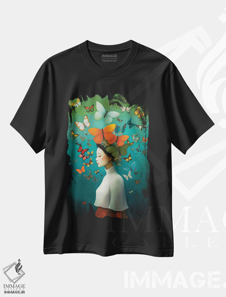 تیشرت طرح دار پروانه دو اثر عبدالله ایویندار