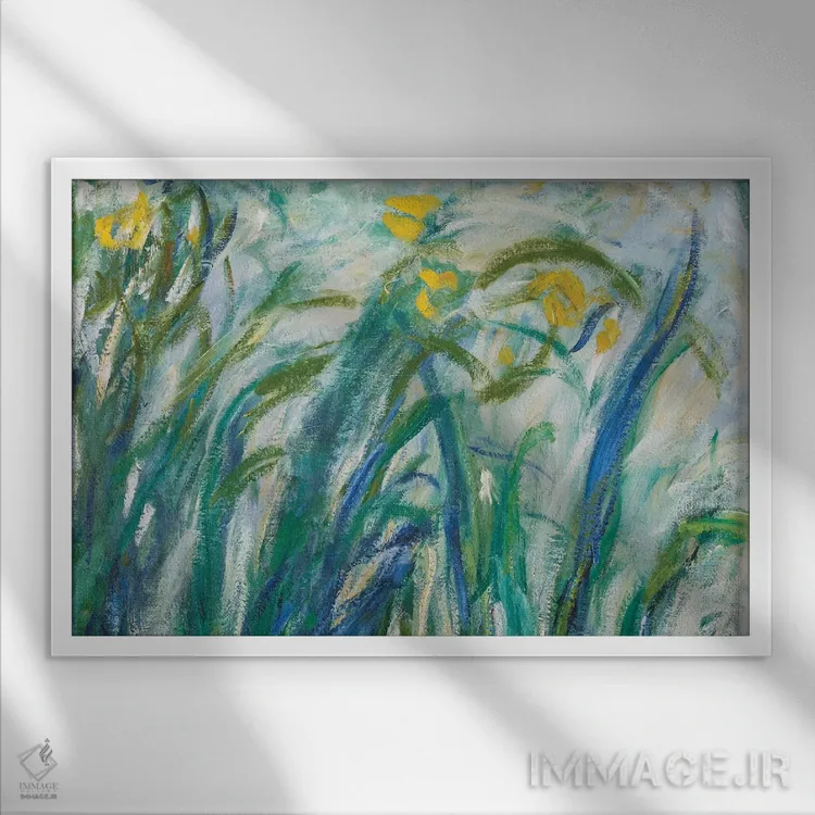 این اثر با عنوان «1924—25، زنبقهای زرد و بنفش، ۱۹۲۴ تا ۱۹۲۵» اثرِ «کلود مونه (نقاش معروف فرانسوی)» چیدمان را از خشکی بیرون میآورد؛ برای اتاق خواب انتخابی خوشسلیقه است. حضورش آرام است، اما بیاثر نیست.