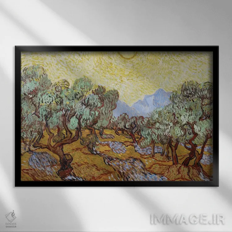 اگر به قابهای رسمی و گالریپسند علاقه داری، «1889، درختان زیتون، ۱۸۸۹» اثرِ «ونسان ون گوگ (نقاش مشهور هلندی پستامپرسیونیسم)» با موضوعِ این اثر در فضای فاخر کلاسیک گزینهی مطمئنی است.
