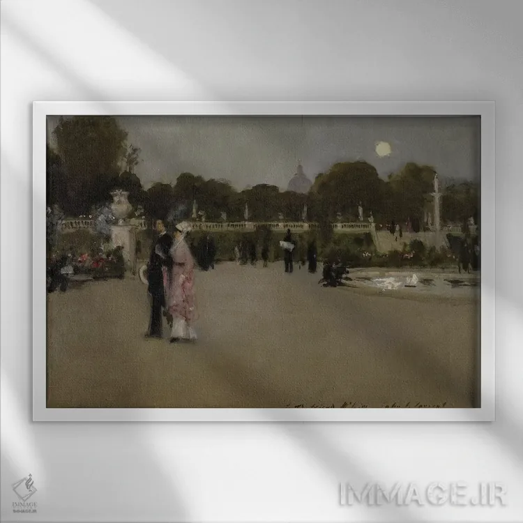 تابلو 1879,باغ‌های لوگزامبورگ در گرگ و میش، ۱۸۷۹ اثر جان سینگر سارجنت (نقاش پرتره آمریکایی) - نمای قاب‌دار سفید