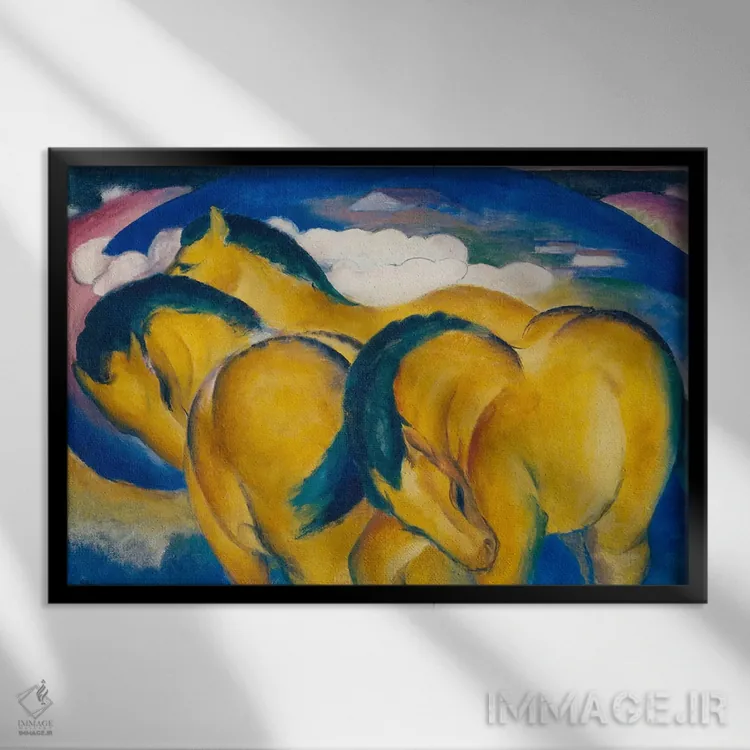 «1912، اسبهای کوچک زرد، ۱۹۱۲» اثرِ «فرانتس مارک (نقاش اکسپرسیونیست آلمانی)» از آن کارهاییست که به دیوار، انرژیِ نرم و زنده میدهد؛ برای اتاق کودک (بدون لحن کودکانه) انتخاب خوبیست. هم فضا را گرم میکند، هم شلوغش نمیکند.