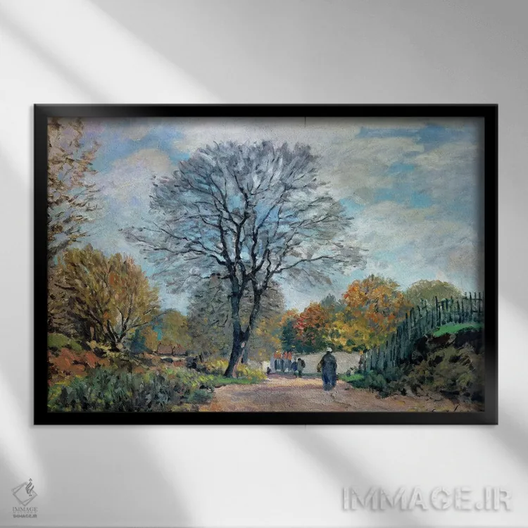 این اثرِ «آلفرد سیسلی (نقاش امپرسیونیست انگلیسی—فرانسوی)» در لحن کلاسیک، وقار بصری دارد؛ موضوعِ این اثر هم برای دیوارِ شاخص و نورپردازی گرم بسیار مناسب است.