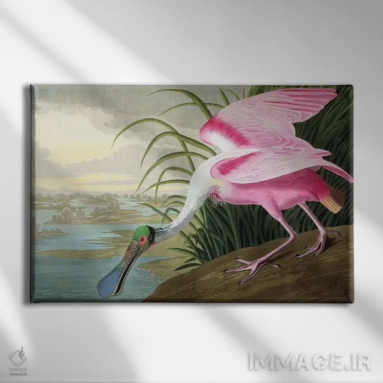 تابلو مدرن Platalea leucorodia, 1836,پره منقار صورتی ، Platalea leucor… اثر جان جیمز آدوبون