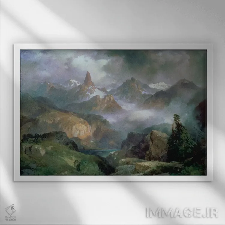 تابلو Yellowstone National Park, 1914,قله ایندکس، پارک ملی یلواستون، ۱۹۱۴ اثر توماس موران (نقاش منظره آمریکایی) - نمای قاب‌دار سفید