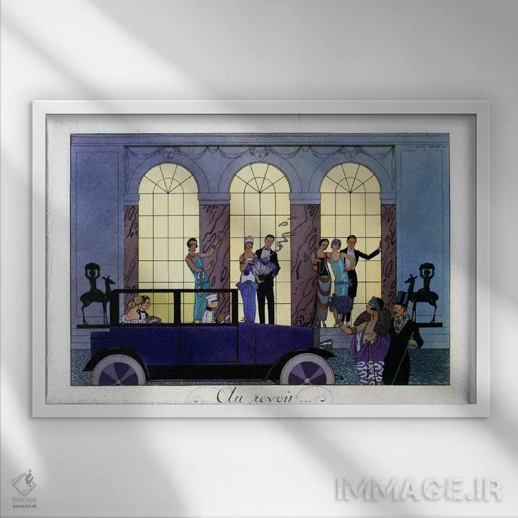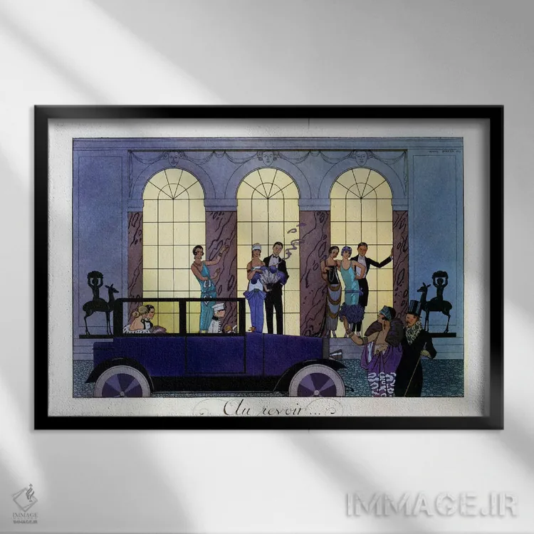 «وداع، حکاکی از آنری ریدل، ۱۹۲۰ (لیتوگرافی)» اثرِ «جورج باربیه (طراح و تصویرگر فرانسوی)» با چاشنی هنری، حس لوکسِ هندسی و مرتب به فضا میدهد—خوب برای نشیمنهای مدرن/نیمهکلاسیک.