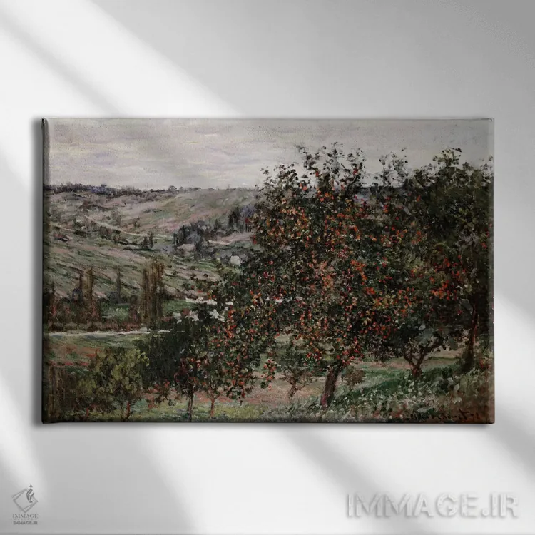 تابلو درختان سیب نزدیک وته‌وی اثر کلود مونه (نقاش معروف فرانسوی) - نمای پرسپکتیو محصول