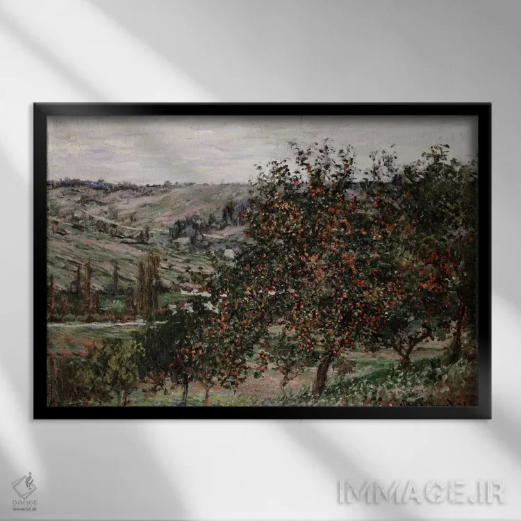تابلو درختان سیب نزدیک وته‌وی اثر کلود مونه (نقاش معروف فرانسوی) - نمای قاب‌دار مشکی