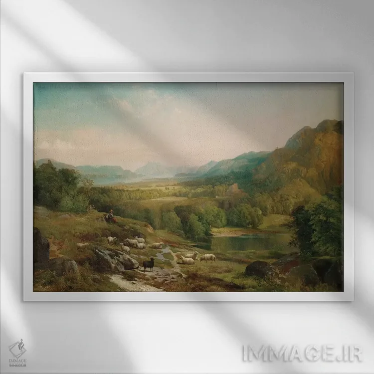 «مراقبت از گله، حدود ۱۸۶۷» اثرِ «توماس موران (نقاش منظره آمریکایی)» با حالوهوای هنر فاخر کلاسیک و موضوعِ این اثر، برای پذیراییهای رسمی و دکورهای کلاسیک انتخابی شایسته است.