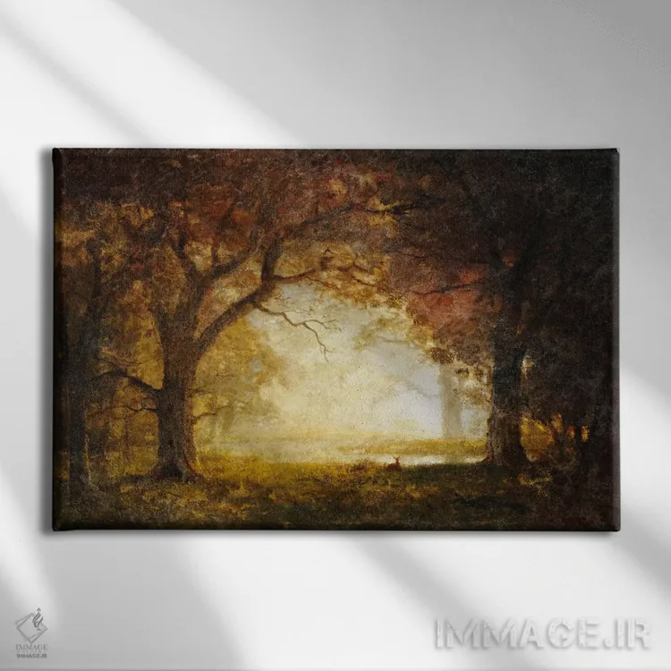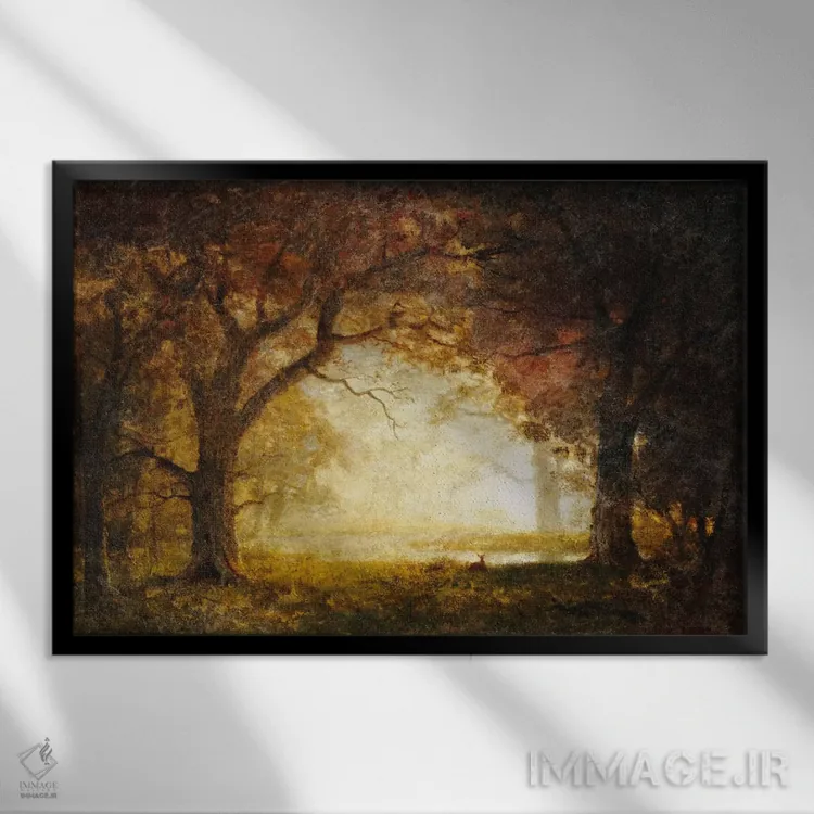 این اثرِ «آلبرت بیرشتات (نقاش منظره آمریکایی)» در لحن کلاسیک، وقار بصری دارد؛ موضوعِ این اثر هم برای دیوارِ شاخص و نورپردازی گرم بسیار مناسب است.