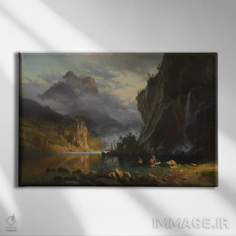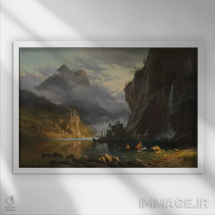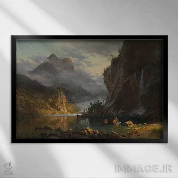 این اثرِ «آلبرت بیرشتات (نقاش منظره آمریکایی)» در لحن کلاسیک، وقار بصری دارد؛ موضوعِ این اثر هم برای دیوارِ شاخص و نورپردازی گرم بسیار مناسب است.