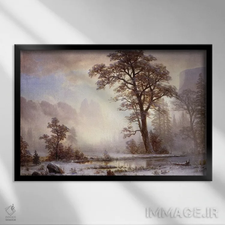 «دره یوسمیت—بارش برف» اثرِ «آلبرت بیرشتات (نقاش منظره آمریکایی)» یک انتخاب کلاسیک و مرتب است؛ موضوعِ این اثر در آن برای دکورهای لوکس و چوبی عالی مینشیند.
