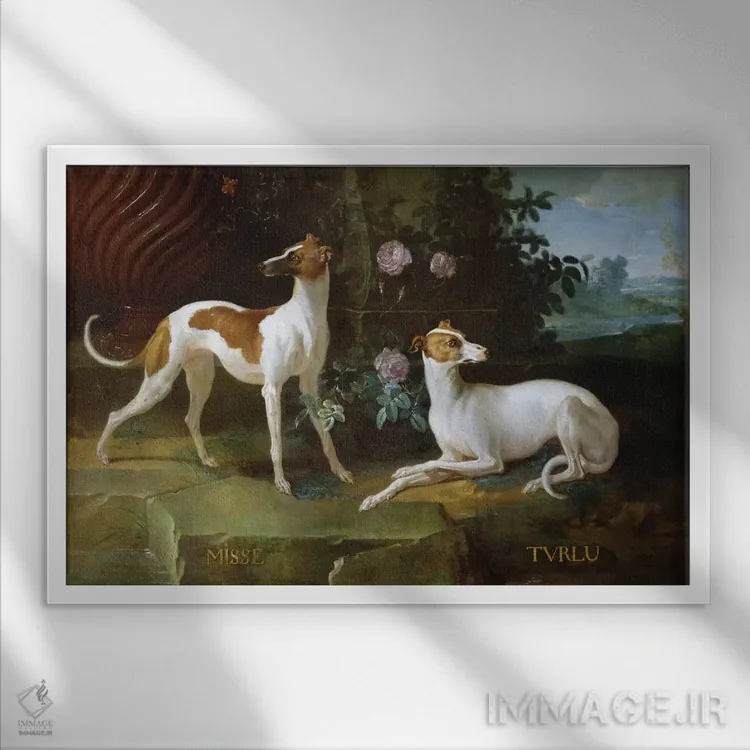 این اثر با عنوان «میسه و تورلو، دو تازی متعلق به لویی پانزدهم (فرانسه)» اثرِ «ژان باتیست اودری» به فضا، گرمیِ ملایم اضافه میکند؛ برای دیوار کنار میز کار انتخابی خوشسلیقه است. با نورپردازی نقطهای، جذابتر هم میشود.