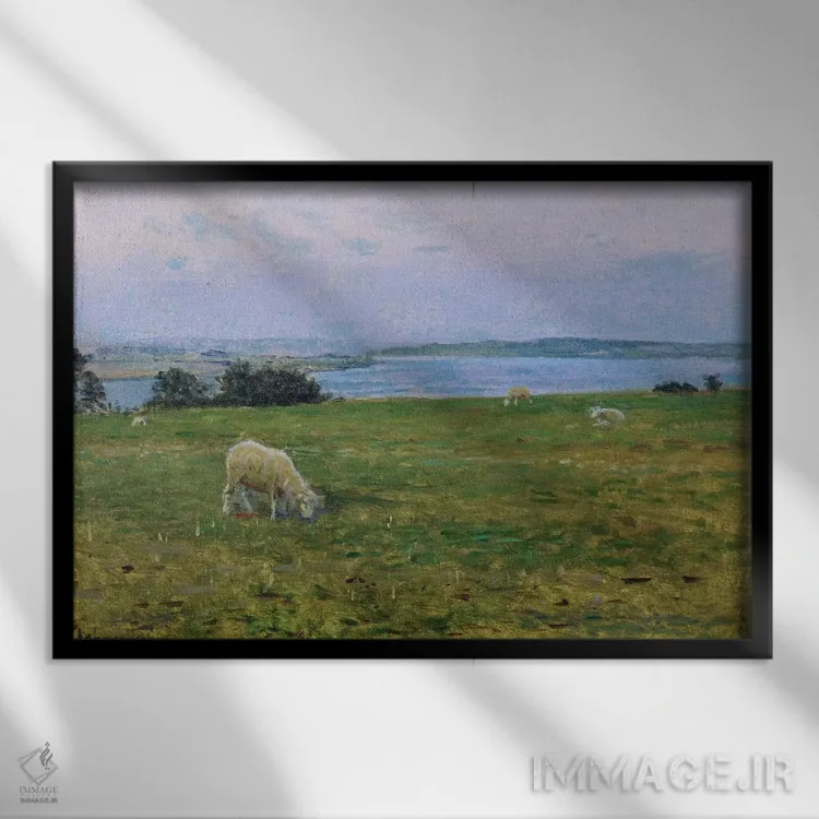 در «گوسفندان در حال چرا، اوستربی، اسکاگن (دانمارک)» اثرِ «ویگو یوهانسن (نقاش دانمارکی)»، حضور حیوانات گرما و شخصیت به فضا اضافه میکند؛ برای کافههای کوچک و صمیمی انتخابی خوشسلیقه است. حسش صمیمی است، اما کیفیتش جدی و خوشپرداخت.