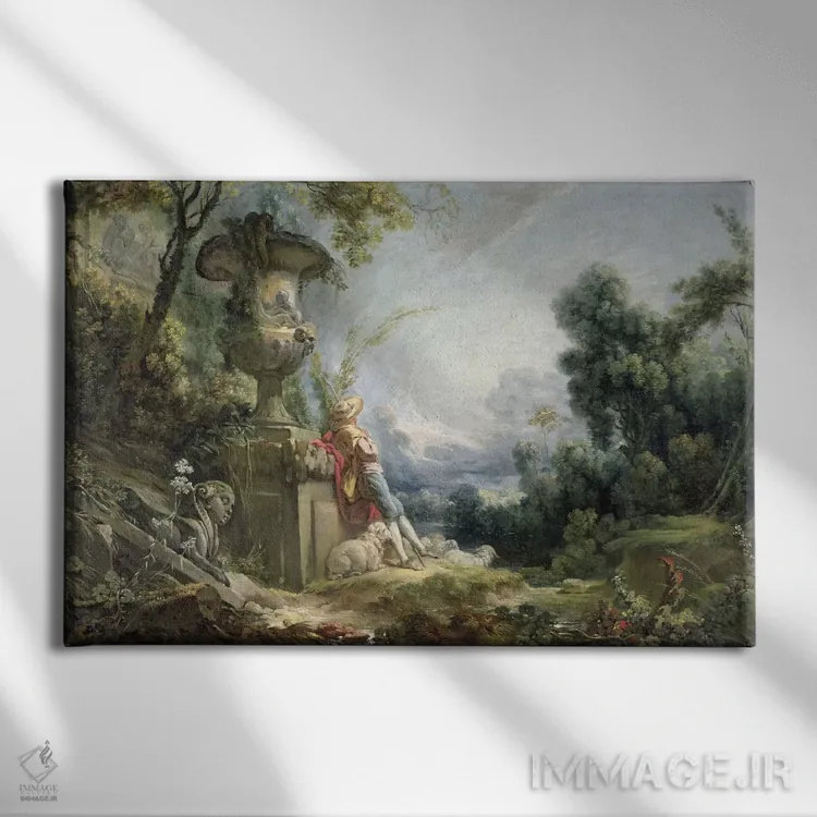 «or Young Shepherd in a Landscape، صحنهای روستایی یا چوپان جوان در طبیعت» اثرِ «فرانسوا بوشه (نقاش فرانسوی سبک روکوکو)» میتواند در کنار رنگهای خنثی، تضاد دلچسبی بسازد؛ برای دکورهای مدرن و مینیمال پیشنهاد میشود. هر بار نگاهش میکنید، یک جزئیات تازه به چشم میآید.