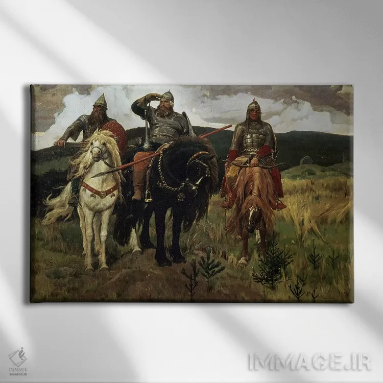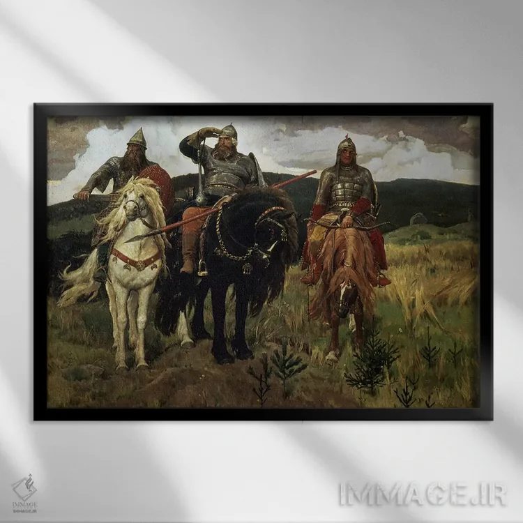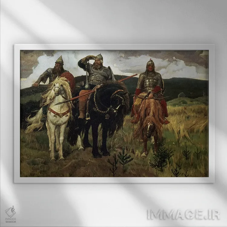 اگر به آثار حیوانات علاقه دارید، «1881—98، شوالیههای جنگجو، ۱۸۸۱—۱۸۹۸» اثرِ «ویکتور میخائیلوویچ واسنتسوف (نقاش روس)» گرما و شخصیت به فضا اضافه میکند، برای خانههایی با چوب و پارچههای گرم گزینهٔ مناسبیست. با نورپردازی نقطهای، جذابتر هم میشود.