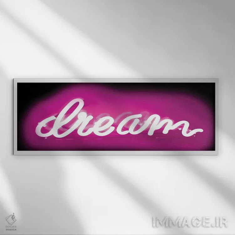 تابلو نئون رؤیا صورتی روی مشکی اثر هیلی کار - نمای قاب‌دار سفید