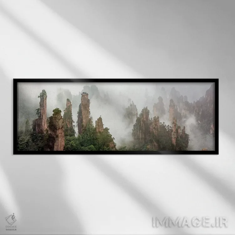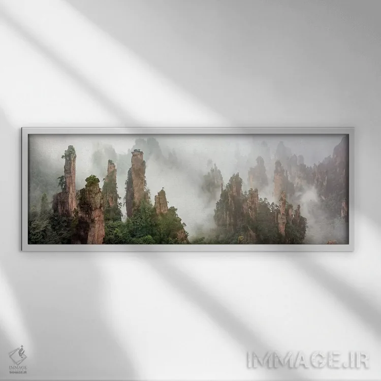 در نگاه اول، «ژانگجیاجیی پوشیده در ابر» اثرِ «هوا ژو» جلوهٔ اتاق را یک پله حرفهایتر میکند؛ برای دیوار بالای کنسول یا شومینه پیشنهاد میشود. برای ترکیب با چوب، سنگ یا فلز، انتخابی دقیق است.