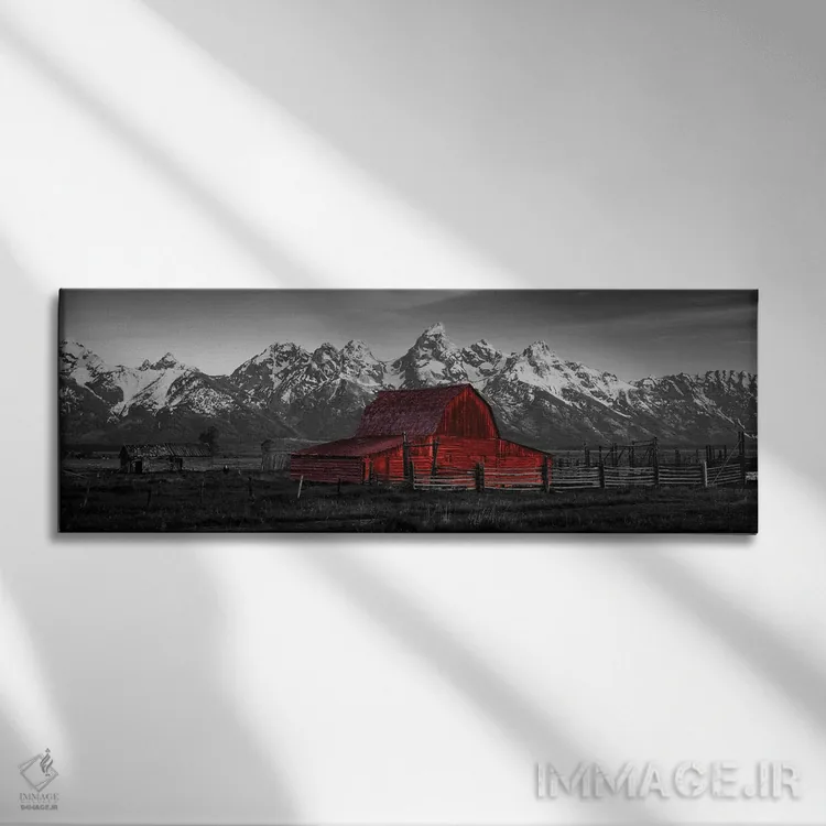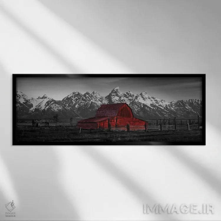 در «انبار پارک ملی گرند تتون وایومینگ آمریکا با رنگ تقویتی»، اثرِ «پانورامیک ایمجز (استودیو عکاسی عریض)» این اثر را با زبان سیاهوسفید ارائه میکند؛ برای دکورهای کلاسیک—مدرن یک انتخاب مطمئن و هماهنگپذیر است.