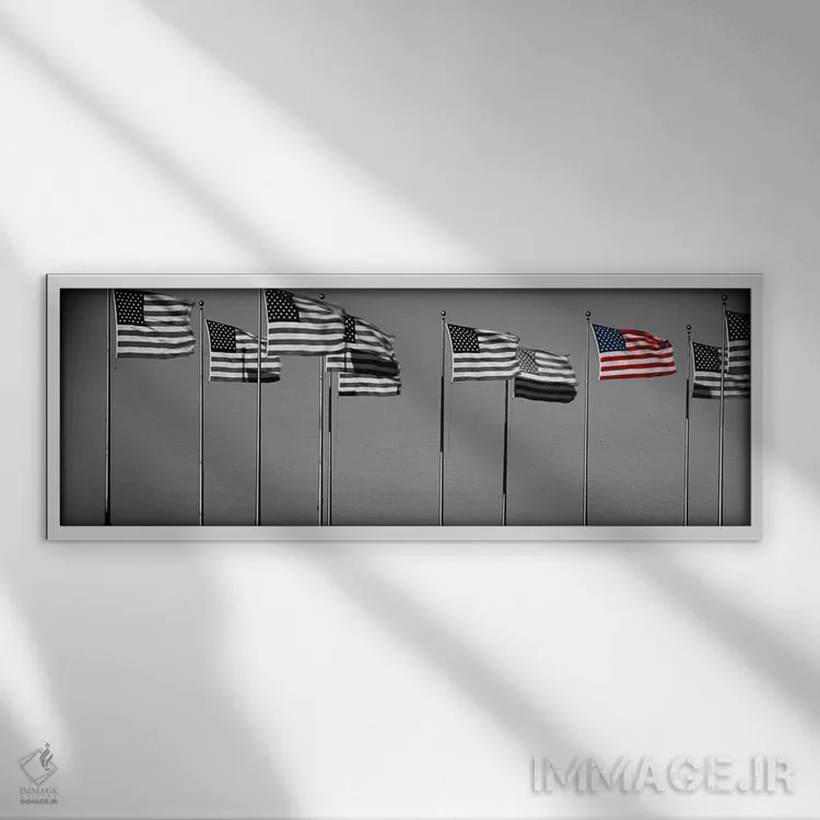 تابلو پرچم‌های نیویورک با رنگ تقویتی اثر پانورامیک ایمجز (استودیو عکاسی عریض) - نمای قاب‌دار سفید
