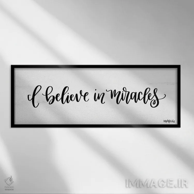 «من به معجزه ایمان دارم» اثرِ «ایمپرفکت داست (برند هنری)» با اجرای پرداختِ هنری، به دیوار شخصیت میدهد؛ مناسبِ فضای کار، اتاق نوجوان یا گوشهی مطالعه.