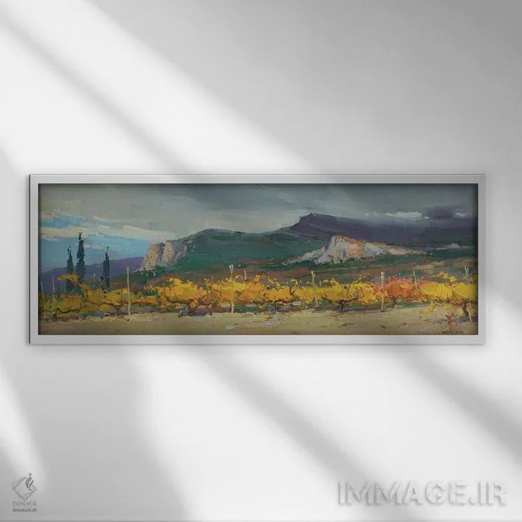 اگر دنبال یک قاب شیک برای دیوارِ شاخص هستی، «باغ انگور پاییزی» اثرِ «ایگور پوزدِف» با موضوعِ این اثر و لحن هنری گزینهی مطمئن است.