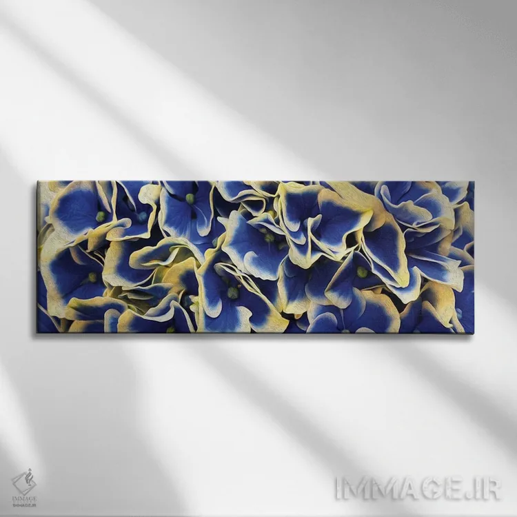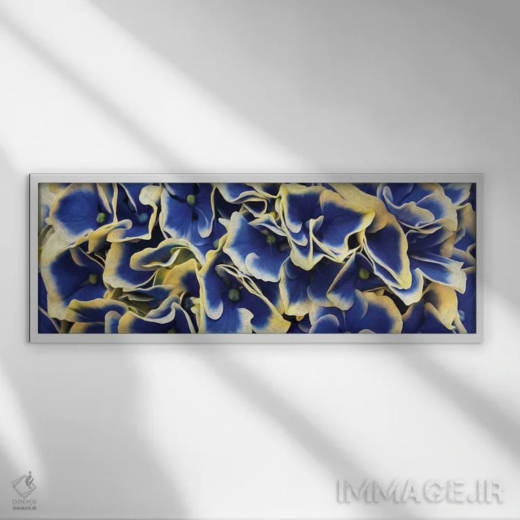 برای دیواری که میخواهید نرمتر دیده شود، «پسزمینهٔ افقی از گلهای ادریسی با برگهای بزرگ» اثرِ «ایوجنیا بیدیوک» حس طراوت را بدون شلوغی وارد اتاق میکند؛ برای دکورهای اسکانباوراوی انتخابی خوشسلیقه است. با قاب روشن یا چوبی، حس طبیعیتری پیدا میکند.