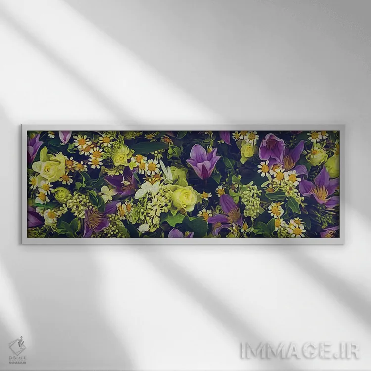 اگر دوست دارید دیوار روشنتر و آرامتر دیده شود، «پسزمینهای از گلهای مروارید، رز زرد، یاس بنفش و یاس سفید» اثرِ «ایوجنیا بیدیوک» به دیوار، روشناییِ ملایم و دلنشین میدهد، برای دکورهای اسکانباوراوی گزینهٔ مناسبیست. جزئیاتش از نزدیک هم ارزش تماشا دارد.