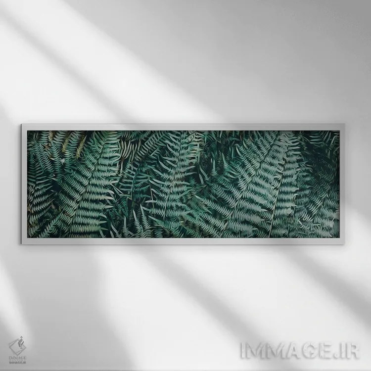 برای دیواری که میخواهید نرمتر دیده شود، «پسزمینه افقی از سرخسها» اثرِ «ایوجنیا بیدیوک» جزئیات نزدیک را چشمنواز نشان میدهد؛ برای کنار میز آرایش یا کنسول انتخابی خوشسلیقه است. فضا را شلوغ نمیکند؛ فقط لطیفترش میکند.