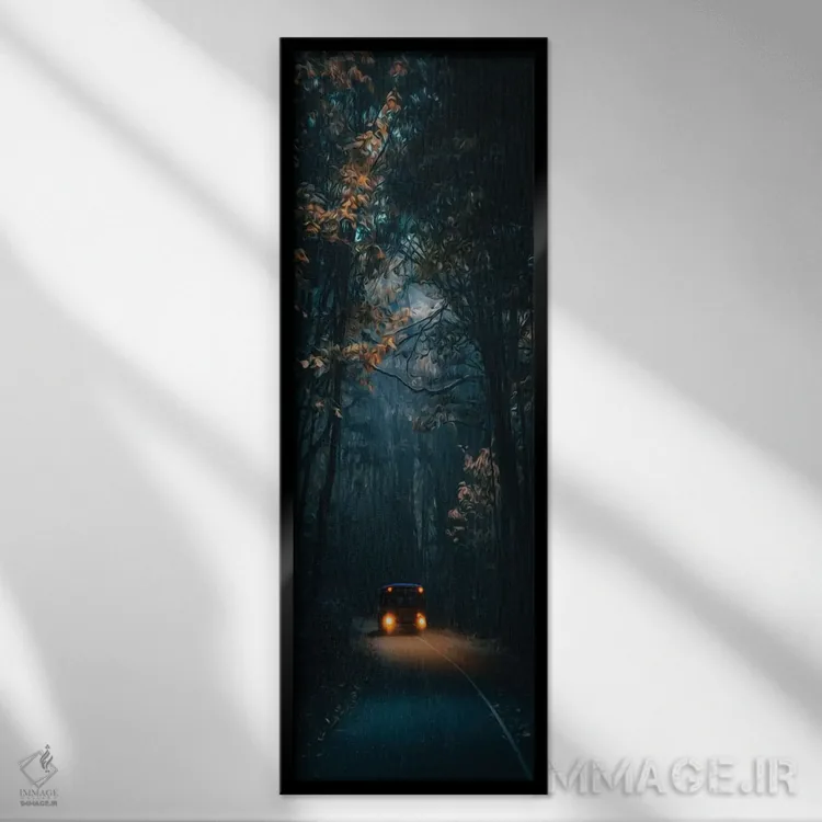 تابلو اتوبوس شبانه در جاده جنگلی اثر ایوجنیا بیدیوک