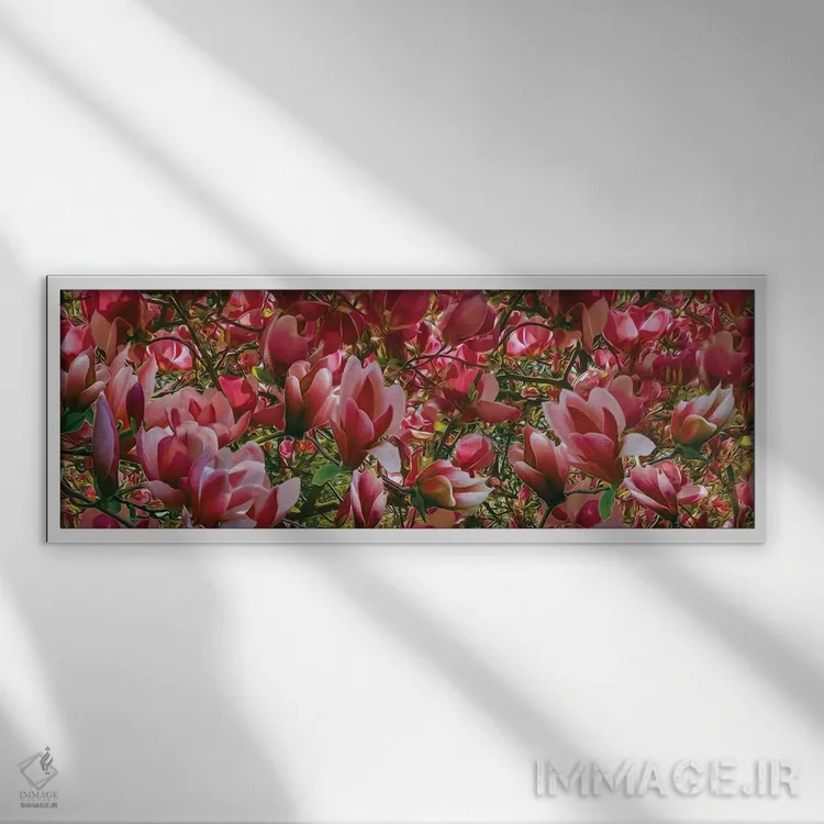 تابلو پسزمینه گل مگنولیای صورتی شکوفا اثر ایوجنیا بیدیوک