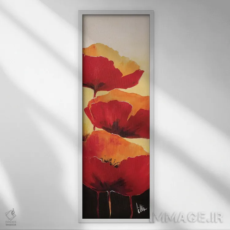 اگر دوست دارید دیوار روشنتر و آرامتر دیده شود، «سه شقایق قرمز ۱» اثرِ «جتی روزبوم» تعادل رنگیِ لطیفی به چیدمان میدهد، برای فضاهای بوهمی گزینهٔ مناسبیست. همیشه بهروز میماند و با فصلها خوب کنار میآید.