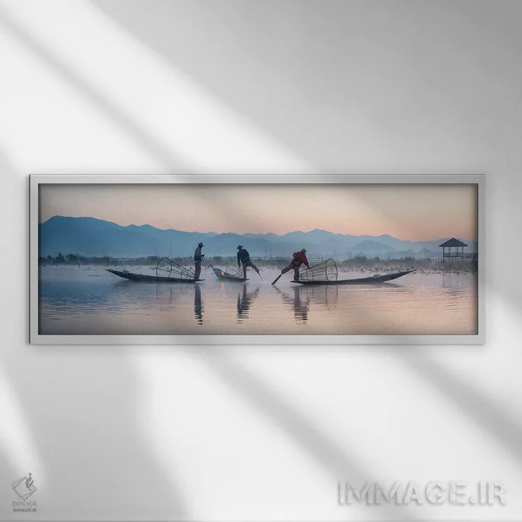 در نگاه اول، «Inle Lake، Myanmar، ماهیگیران سنتی اینتا، دریاچه اینله، میانمار» اثرِ «یان بکه» جلوهٔ اتاق را یک پله حرفهایتر میکند؛ برای دیوار بالای کنسول یا شومینه پیشنهاد میشود. در کنار گیاهان آپارتمانی هم جلوهٔ لطیفی پیدا میکند.