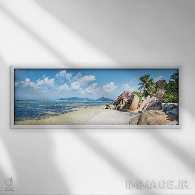تابلو Seychelles,نمای پانوراما از ساحل آنسه سورس دارژان در جزیره لا دیگ، سیشل اثر یان بکه - نمای پرسپکتیو محصول