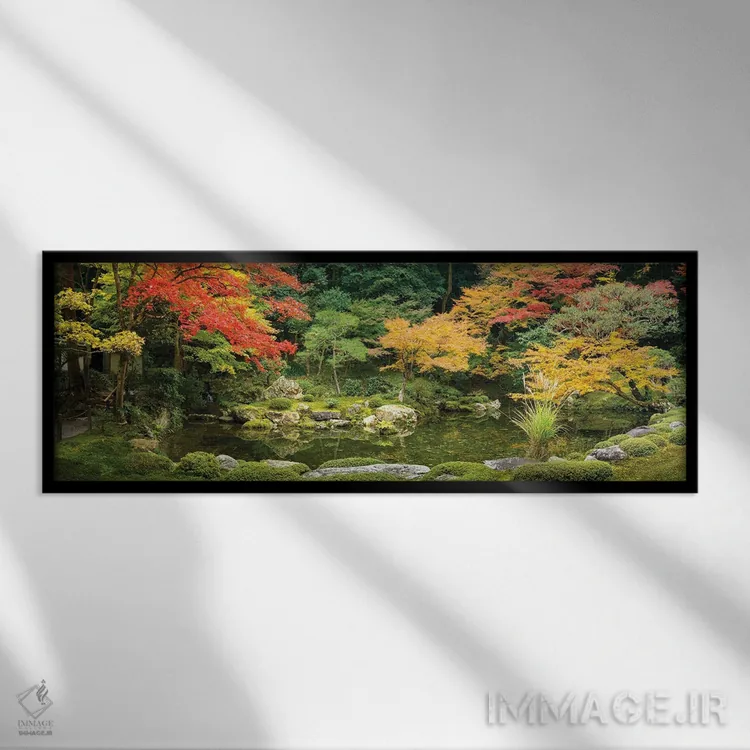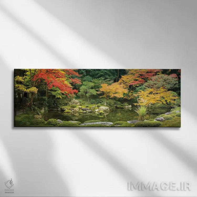 برای دیواری که دوست دارید «حرف داشته باشد»، «Kyoto، Japan، نمای پانورامای یک باغ ژاپنی در فصل پاییز، کیوتو، ژاپن» اثرِ «یان بکه» چیدمان را از حالت پراکنده خارج میکند؛ برای کافهها و فضاهای عمومی کوچک پیشنهاد میشود. هم از دور چشمگیر است و هم از نزدیک پرداخت دارد.