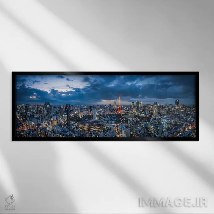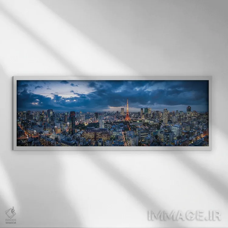 «پانورامای افق توکیو در گرگومیش با منظره برج توکیو» اثرِ «یان بکه» با تاکید بر عمق میدان و حسِ فاصلهها، فضای دیوار را بزرگتر و بازتر نشان میدهد.