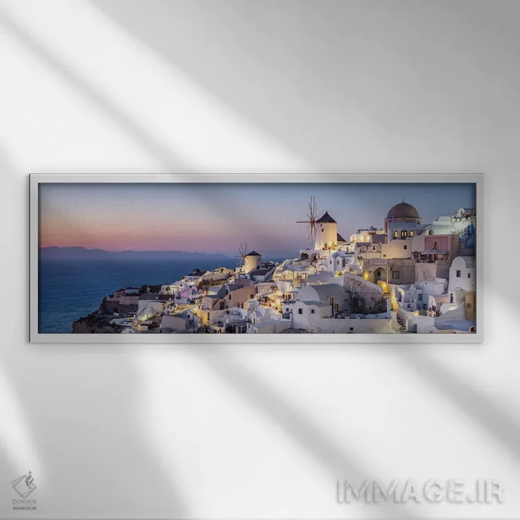 برای خانههایی که به زیباییِ آرام علاقه دارند، «Greece، نمای پانورامای اویا هنگام غروب، سانتورینی، یونان» اثرِ «یان بکه» فضا را روشنتر و زندهتر نشان میدهد؛ برای نشیمنهای صمیمی و پذیراییهای شیک پیشنهاد میشود. برای هدیه دادن هم انتخابی محترمانه و امن است.