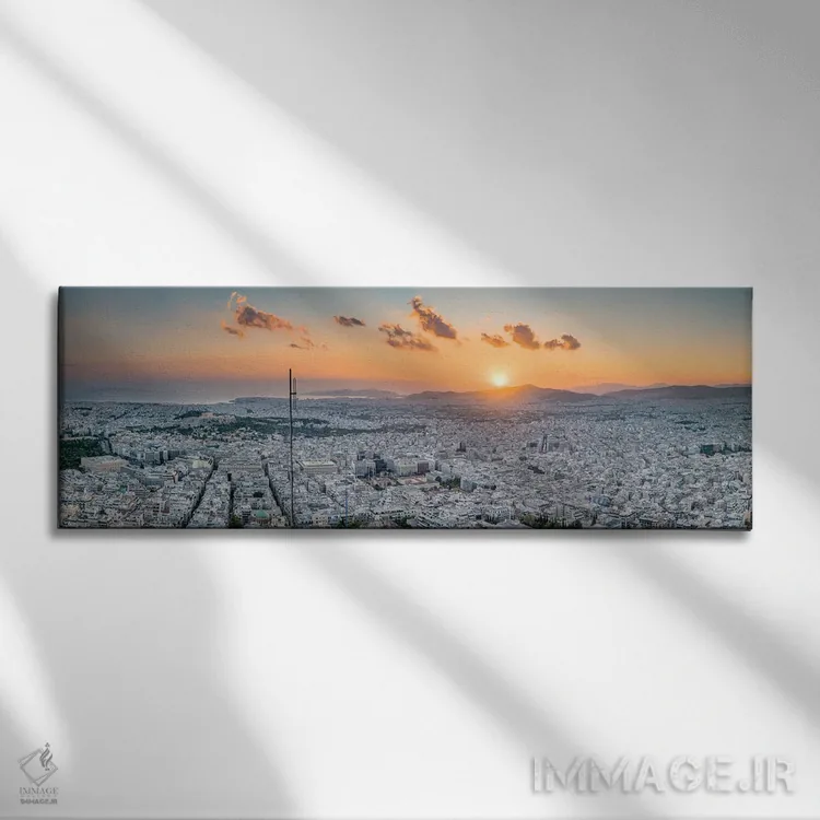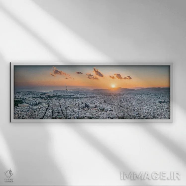 اگر دیوارِ خانهتان به یک منظرهی نفسکش نیاز دارد، «افق آتن هنگام غروب دیده شده از بالای تپه لوکابِتوس» اثرِ «یان بکه» با حالوهوای این اثر انتخاب خوبیست.