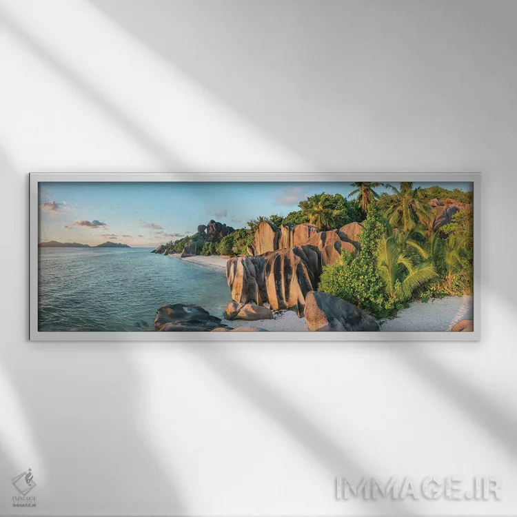 «La Digue، Seychelles، ساحل آنس سورس دارژان هنگام غروب، لا دیگو، سیشل» اثرِ «یان بکه» از آن انتخابهاییست که سلیقهٔ صاحبخانه را بیاغراق نشان میدهد؛ برای دیوارهای گالریوار و ترکیب چند اثر انتخابی عالی است. برای ترکیب با چوب، سنگ یا فلز، انتخابی دقیق است.