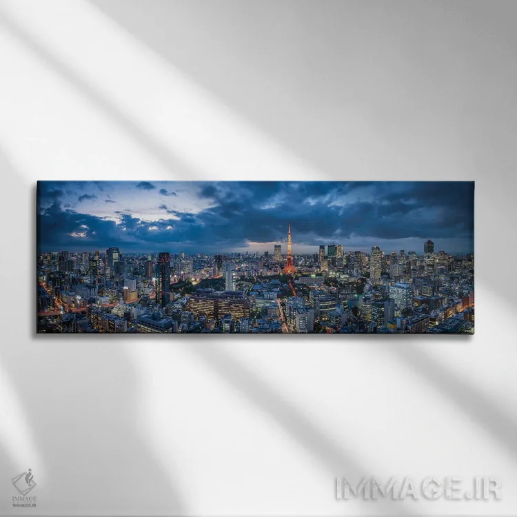 تابلو پانورامای افق توکیو در شب با دید برج توکیو اثر یان بکه