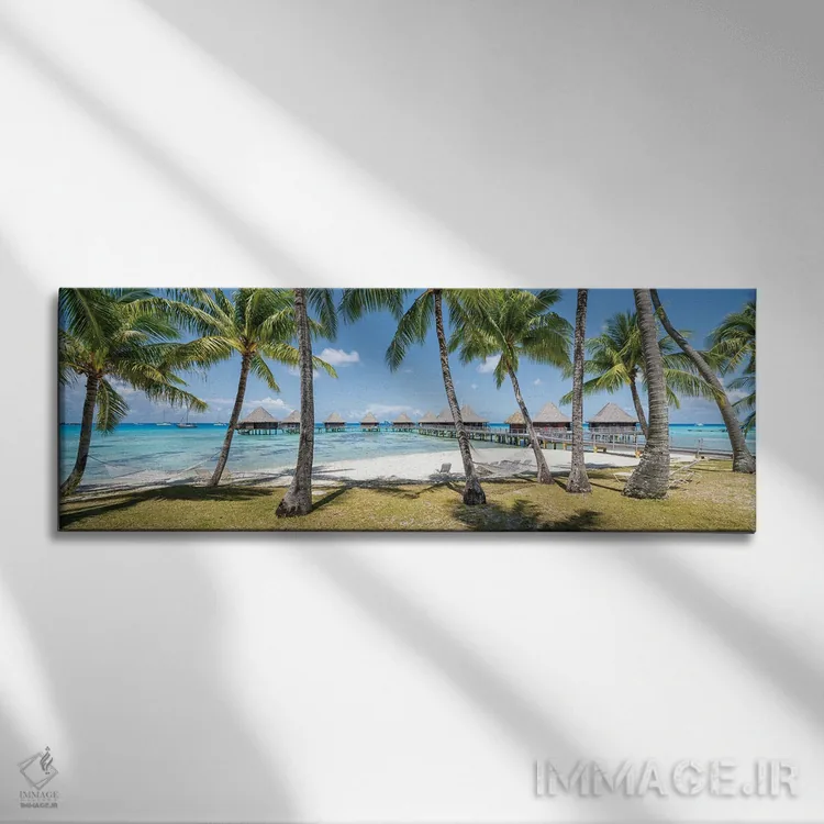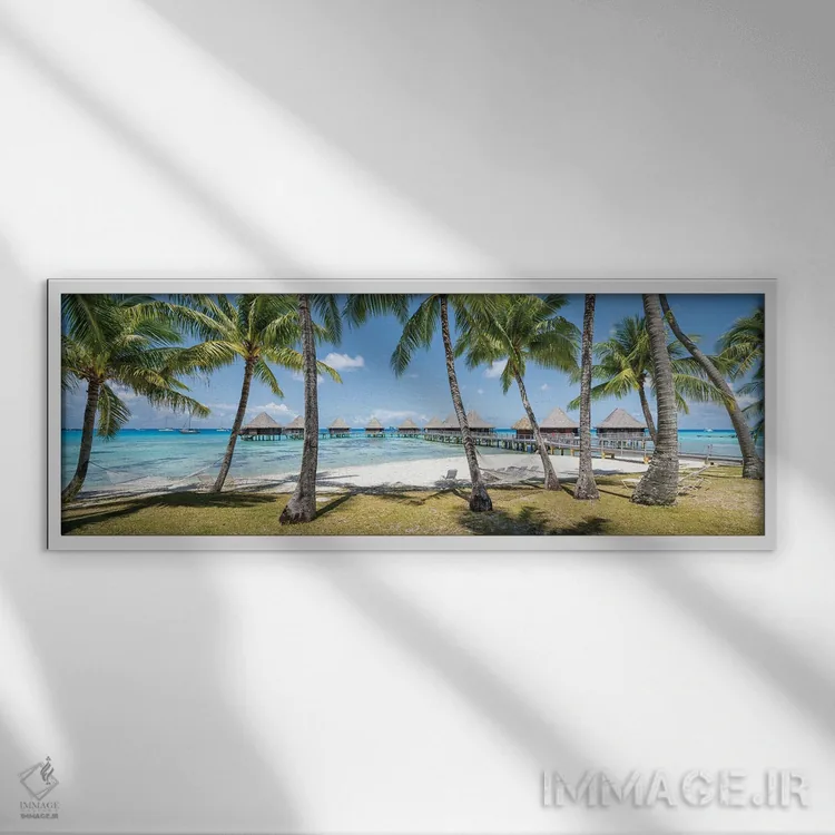 اگر میخواهید دیوار از «پسزمینه» بیرون بیاید، «پانورامای ساحلی در پلینزی فرانسه» اثرِ «یان بکه» جلوهٔ دیوار را منسجمتر میکند؛ برای دکورهای کلاسیک با چوب و پارچه پیشنهاد میشود. در کنار قاب مناسب، جلوهٔ کار چند برابر میشود.