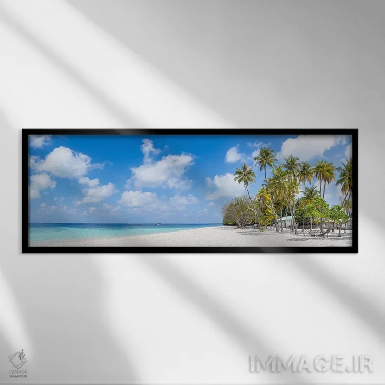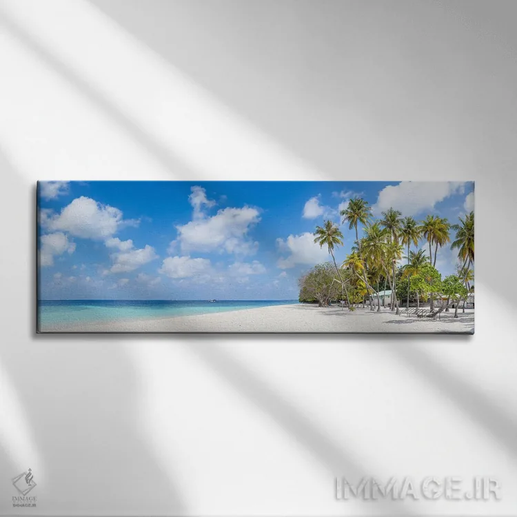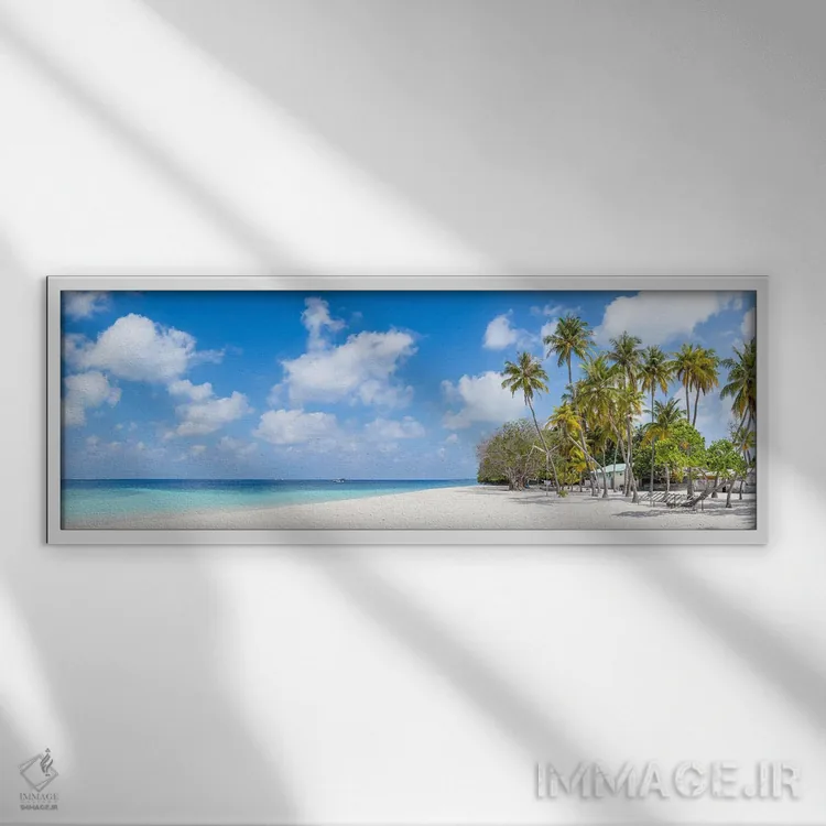 «Maldives، پانورامای ساحل زیبا با درختان نخل، مالدیو» اثرِ «یان بکه» از آن انتخابهاییست که تضادهای رنگی را خوشقوارهتر میکند؛ برای فضاهای کمنور که به «نقطهٔ روشن» نیاز دارند انتخابی عالی است. هم از دور چشمگیر است و هم از نزدیک پرداخت دارد.